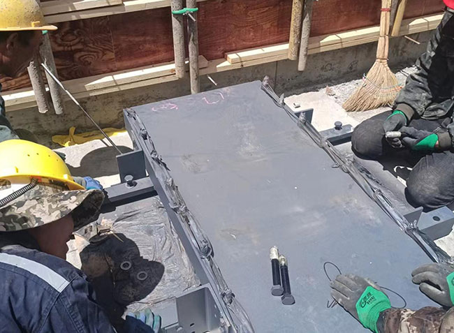 1、抗震鋼支座裝置高度有必要符合規(guī)劃要求,要保證支座支承平面的水平及平整,支座支承面四角高差不能夠大于2mm.2、上、下銜接板在梁體裝置完成后要進(jìn)行拆除,以避免約束梁體的正常轉(zhuǎn)動(dòng),然后及時(shí)裝置活動(dòng)支座的橡膠防塵置。3、采用球形鋼支座時(shí),橋梁梁體及橋墩臺(tái)支承部位的混凝土標(biāo)號(hào)不能低于C35,如果有特殊情況有必要征求規(guī)劃單位同意。4、抗拉球形鋼支座裝置時(shí)抗震鋼支座的相對(duì)滑動(dòng)面要用、酒精細(xì)心擦凈,不能夠夾 -